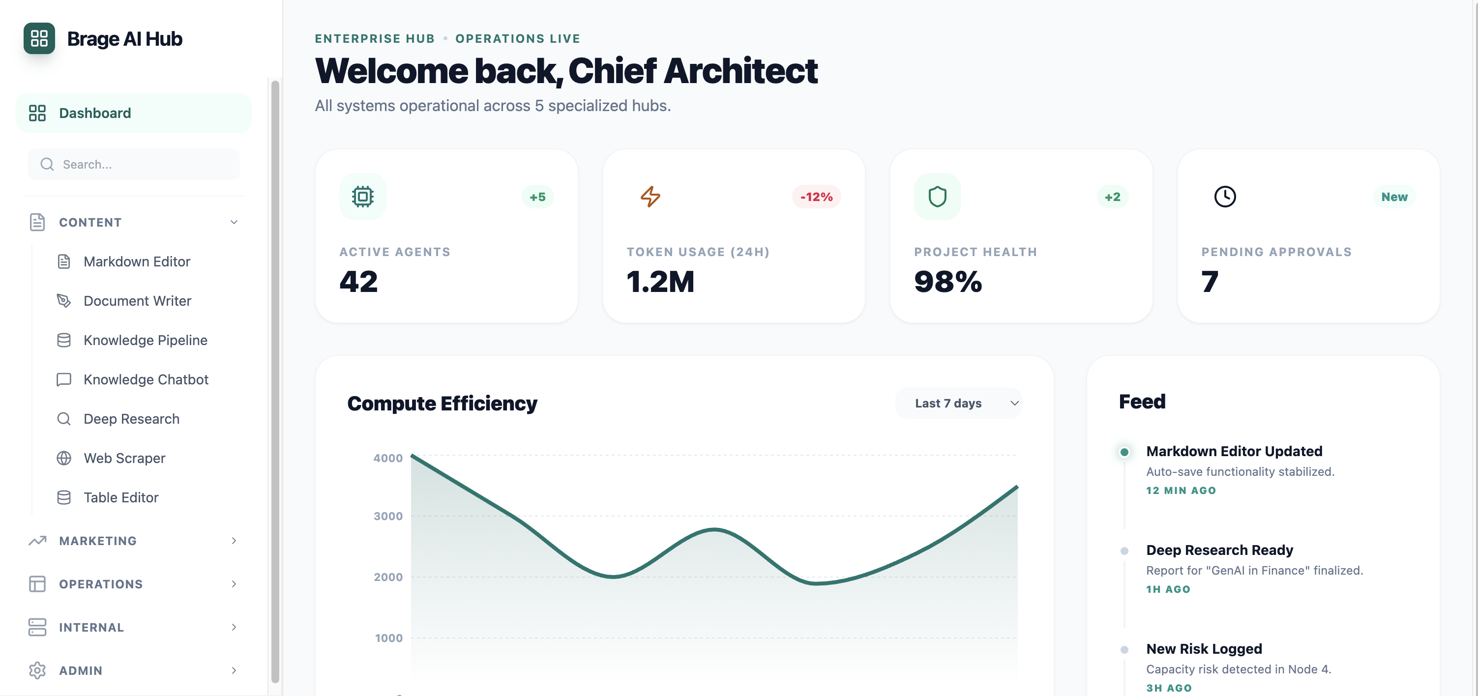 Enter Brage AI's "Content Hub." The Content Hub is a suite of tools designed to populate, edit, and utilize your database content without writing a single line of code. While it integrates with your specific apps (like project management), its core focus is administrative: giving you control over your data.